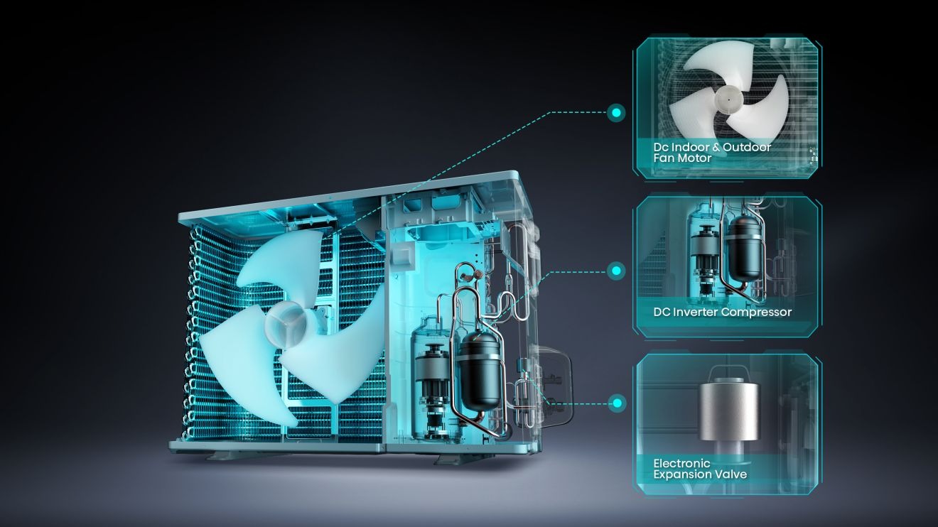 Specijalni grejač tacne spoljašnje jedinice poboljšava efikasnost odmrzavanja šasije tokom zime i stoga pomaže u održavanju optimalnih performansi grejanja vašeg klima uređaja tokom cele sezone i produžava životni vek jedinice.